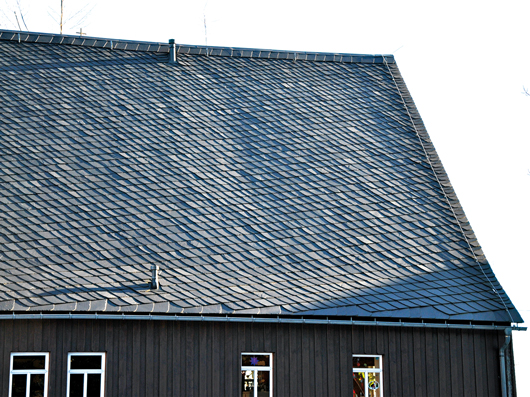 Dabei sind die unterschiedlichen Steinbreiten innerhalb der Gebindehöhe zu verteilen. Die Differenz von der schmalsten zur breitesten sichtbaren Steinbreite der Decksteine muß im Bereich eines Deckgebindes mindestens 4 cm betragen, und zwar unabhängig von der Sparrenlänge. Unterschritten werden können die Maße nur bei kleineren Dachflächen.