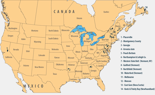 Die Erläuterung zu den Schiefervorkommen von Nord Amerika konzentrieren sich auf die wichtigsten Vorkommen in den USA und Kanada.