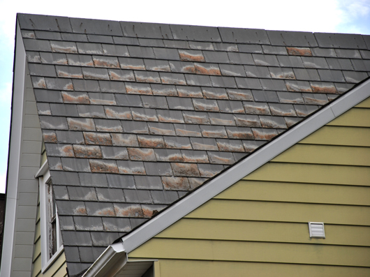 • Abb. 8 Effloreszenz ist ein typisches Phänomen von Schiefern aus der "soft slate" Einheit (Slatington)