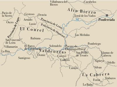 Geographisch befindet sich das Gebiet von El Caurel am Kontakt der Provinzen Lugo, Orense und León. Valdeorras liegt in der Provinz Ourense und ist mithin einer der wichtigsten Schieferregionen Spaniens. Bedeutendste Lokalitäten innerhalb der Schieferprovinz Valdeorras sind Casayo, Castañero, Mormeau, Rozadais, Los Molinos, Domiz, Vianzola, Penedo sowie San Vincente.