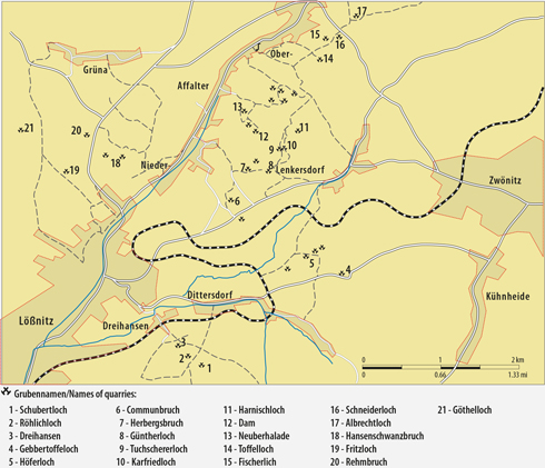 Ehemalige Schiefergruben zwischen Lößnitz und Affalter.